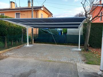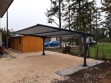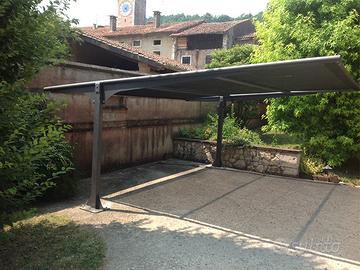 TETTOIA AUTO A SBALZO IN METALLO mt.5x5 a soli euro 2340 ideale per auto e moto. Completa di copertura con rete ombreggiante e antigrandine.