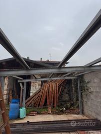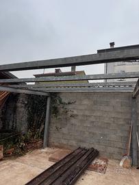 Vendo tettoia zincata composta da 3 travi portanti, 5 traversoni e copertura in lamiera verniciata. Copertura 7,5x4 x un totale di 30mq