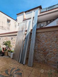 Vendo materiale completo per realizzazione tettoia/copertura esterna, smontato da struttura funzionante. Incluso nel lotto: 1 grondaia da 5 m (larghezza 10 cm, profondità 7 cm); 4 tubolari zincati 40x40 mm (lunghi circa 3,70 m); 4 tubolari zincati 30x80 mm (lunghi 5 m); 2 tubi in alluminio per grondaia Ø 60 mm; 3 curve in alluminio Ø 60 mm + 2 manicotti; 5 pannelli PVC trasparente anti-grandine (3,80 m x 95 cm); 1 pannello PVC trasparente anti-grandine (3,80 m x 50 cm); 👉 Ideale per tettoia, veranda, copertura giardino o posto auto. condizioni: buono stato; vendita: solo in blocco; ritiro: a mano, già smontato (no spedizione); prezzo leggermente trattabile.