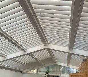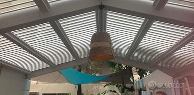 Struttura brisoleil, come in foto, in legno con listelli, con copertura in telo pvc trasparente.