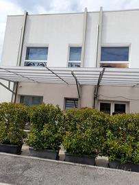 Vendesi tettoia in acciaio. Ha una lunghezza di 14 metri per 4.50 e le assi in acciaio che la sostengono sono di 4,30metri con supporti centrali di 7 metri . Facile da smontare e in caso da dividere in due parti. Si ha la possibilità di montarla su potrelle in ferro o direttamente su muro all'altezza che si preferisce.