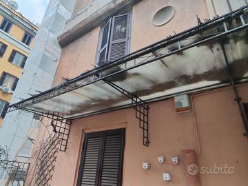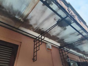 Vendesi tettoia in ferro 11 metri di lunghezza x 1,2 di profondità, attualmente smontata e divisa in tre parti (la copertura in plexiglas non è presente). Prodotto artigianale creato su misura, vendo per ristrutturazione terrazzo.