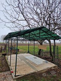 Dimensioni 3mt x 4.75 mt altezza 2.70 mt . Quattro capriate più pali e traversi come da foto....ex copertura pollaio , struttura sana ma qualche parte da riverniciare .