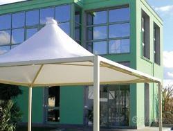 Gazebo per auto con struttura portante in acciaio zincato e con telo di copertura in pvc. e sopratutto con grondaia integrata su struttura con scarico acque a terra all'interno colonne,