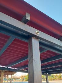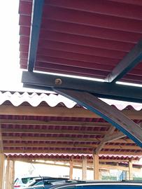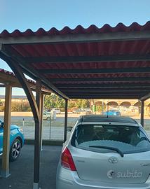 Buongiorno, vendo nuova tettoia per auto trattata in autoclave (quella che vedete nelle foto è già montata e impregnata a piacere della persona, ho messo le foto solo per fare vedere come sarebbe, quella invece che vendo e colore legno chiaro acquistata e mai montata praticamente nuova) misura larghezza 3 mt per lunghezza 4,50, completa di tutto staffe per fissaggio a terra, viterie, copertura ecc. solo da prenderla e montarla. Articolo nuovo, regolabile, tenuto sempre al coperto. Dimenticavo, la copertura non è come quella che vedete ma più resistente e più larga in modo che sporga in tutti 4 i lati di 25 cm. circa forse qualcosa in più. Prezzo trattabile.