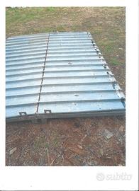 Tettoia in ferro zincato dimensioni 3000 x 2000 due falde fornita di colmatura centrale, quattro piedistalli altezza 2600,piede di partenza ,saette,tutto zincato.