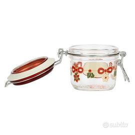 Materiale:vetro decorato; guarnizione in gomma; gancio in acciaio inox; cucchiaino: acciaio inox.