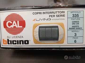 copri interruttori 3 posti per ticino living international, cornice oro 24k inserto marmo bianco articolo 335 della CAL su licenza bticino. nuovi imballati, disponibili 7 unità. vendo a 85 euro in blocco