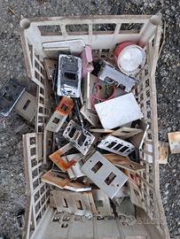vendo più di 100 pezzi tra interruttori 10/16 ampere, prese 10/16 ampere, deviatore, spie luminose, variatori, telai, mostrine. Il materiale è da pulire dalla polvere ovviamente. Cedo in blocco.
