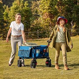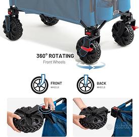 TIMBER RIDGE Carrello Spiaggia Ruote Grandi con Freno Carrello Pieghevole Trasporto Braccioli Regolabili e Tasche Laterali per Rimorchio Giardino Campeggio all'aperto Ogni Tipo di Terreno