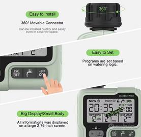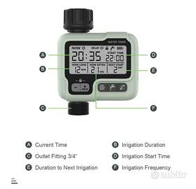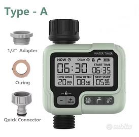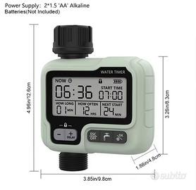 Timer automatico programmabile per irrigazione. Dotato di adattatori. Alimentazione con 2 batterie AA non incluse. Nuovo in confezione originale