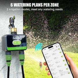 Timer Irrigazione 2 uscite, ingresso e uscita in ottone, Centralina Irrigazione per irrigazione giardino con app/controllo vocale Alexa, ritardo della pioggia/controllo manuale/automatico 2 uscite e 12 programmi individuali】Hai esigenze di irrigazione diverse per le diverse aree del giardino? Il nostro Timer Irrigazione 2 uscite offre un totale di 12 programmi di irrigazione individuali. È possibile programmare ciascuna valvola separatamente con un massimo di sei diversi programmi di irrigazione. Questo ti permette di creare un piano di irrigazione adeguato per ogni zona della tua proprietà senza incidere sulle altre zone.