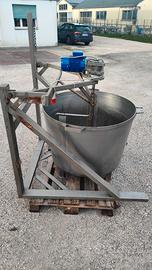 Tino in acciaio inox con mescolatore,per la mescita di liquidi alimentari,frutta,inoltre è possibile anche la lavorazione di arriciatura dei polpi disponibilità N.2,il prezzo è riferito a un singolo lotto
