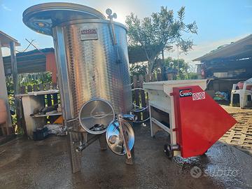 Tino in acciaio Inox da 5 quintali, completo di accessori, rubinetteria originale, con coperchio tenuta stagna, e compressorino. Costruito su richiesta personalizzata, con portascala. Come nuovi, usati poche volte per cessata attività.