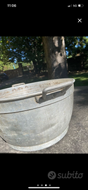 Tinozza in metallo vintage, ammaccature tipiche del tempo Bellissima come fioriera o decorazione da interno