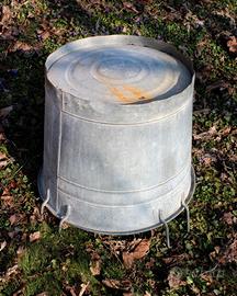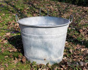 Tinozza in zinco circolare con tre manici.