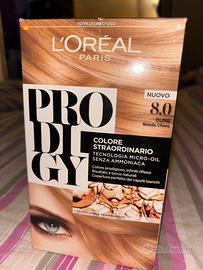 Una confezione NUOVA E COMPLETA DI TUTTO Di Tinta Per Capelli Da Fare a Casa In Autonomia Con Le Istruzioni e Tutto Il Necessario Compreso (vendo per cambio colore),Originale Marca:”L’Oreal Paris” PRODIGY Colore Straordinario 8.0 DUNE -BIONDO CHIARO,COPRE PERFETTAMENTE I CAPELLI BIANCHI(è scritto sulla confezione):vedi tutte le foto con tutti i dettagli,è compresa la scatola di tutto comprese istruzioni e guanti e spatola per emulsionare -vedere nelle foto la lista sulla confezione di cosa c’è dentro la confezione,tutto nuovo sigillato e completo solo la scatola di cartone fuori/esterna si è leggermente rovinata ma poco la scatola di carta/cartone:vedi foto,per domande scrivetemi,la confezione comprende tutto ciò con cui l’ho acquistata TUTTI I FLACONI E GUANTI E SPATOLA DENTRO E TUTTO SONO SIGILLATI.