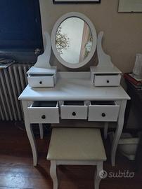 Toeletta tavolino per trucco donna Jysk come nuova 5 cassetti con specchio e sgabello. Larghezza: 80 cm, Altezza: 130 cm, Profondità: 40 cm CONSEGNA A MANO In negozio in offerta a 165€. Vendo alla metà prezzo non trattabile
