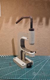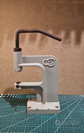 Vendo robusto torchietto manuale da banco, ideale per artigianato, fai-da-te e lavori di pelletteria. È realizzato in solida ghisa: resistente e fatto per durare. Il meccanismo a vite e la leva sono fluidi e perfettamente funzionanti. Ideale per: Rivetti, bottoni a pressione o per fustellare pelle e cuoio. Applicazione di occhielli, rivetti, borchie, lavori di fustellatura. La base è dotata di 4 fori per poterlo fissare saldamente al banco da lavoro. Le condizioni estetiche sono ottime, esattamente come visibile nelle foto.