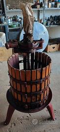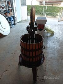 vendo Torchio a leva da 40 usato ma in ottime condizioni Caratteristiche del torchio a leva da 40 per vino con gabbia in legno: Movimento manuale a cricco a due velocità azionato a leva Cricco in ghisa Gabbia costruita con doghe in legno di faggio evaporato e perni sfilabili Vite in acciaio trafilato che garantisce una lunga durata nel tempo Bacino di raccolta del mosto in acciaio rinforzato con fazzoletti Treppiede di sostegno in acciaio Diametro interno gabbia: 400 mm Altezza gabbia: 550 mm Peso: 75 kg Capacità di carico: 250 Kg di uva Completo di pezzotti e mezzelune non è prevista la spedizione solo ritiro a mano per informazione mi potete contattare al 347/0707580 e chiedere di Giancarlo