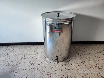 contenitore da 200L in acciaio inox con galleggiante coperchio e rubinetto;