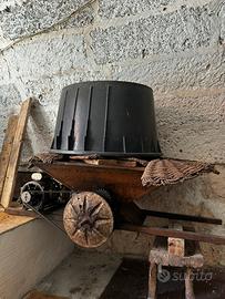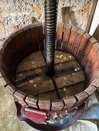 Vendo torchio per uva, meccanismo a mano a due velocità. Usato ma tenuto benissimo. Si compone di una gabbia in doghe di faggio evaporato dal diametro di 50 cm e la cui capacità è di ben 400 kg di uva. La gabbia è sorretta da un resistente scheletro di metallo, adeguato a sopportare pressioni anche elevate. Il cricco può avanzare a due diverse velocità in modo da controllare con precisione la pressione applicata. Il torchio a leva da 50 cm è venduto completo di mezzelune e pezzotti, strumenti fondamentali per distribuire equamente l’azione del cricco su tutta la superficie. Regalo macchina per macerare i grappoli completa di motore a cinghia. (ultima foto)
