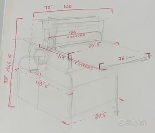 Torchio calcografico convertibile per la stampa dei grafismi a rilievo per mezzo di un timpano che può essere montato e smontato. Marca Paolini. Dimensioni stampa 70 x 100 cm. Dimensioni del torchio: vedi disegno.