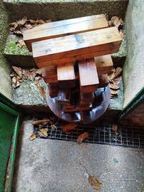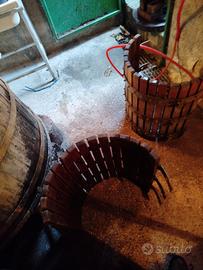Misure cesto: diametro cm. 55, per cm.63 di altezza. Altezza totale torchio cm. 185, diametro vite cm. 5.