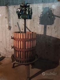 Vendo torchio per uva come da foto, diametro cm. 55; altezza da fondo piatto a sommità filettatura m. 1,35. Euro 330,00