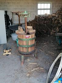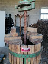 Torchio per uva funzionante in buone condizioni. Ingombro: .altezza totale da terra cm. 162 e larghezza totale cm. 75. Misure del torchio: altezza cm. 126 e larghezza cm. 63. Disponibilità di consegna a domicilio ( nelle vicinanze) con pagamento a parte.
