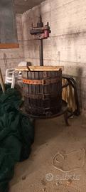 Lotto di 2 Torchi per Uva / Vino tradizionali in legno (grande + piccolo). Due torchi a gabbia d’epoca, vecchi e non usati da diversi anni. Grande: robusto, per produzioni medio-grandi. Piccolo: compatto, per piccole quantità. Struttura in legno con cerchi in ferro e vite centrale. Hanno i segni del tempo ma conservano il fascino rustico. Necessitano di pulizia e piccola manutenzione. Ottimi per: Produzione di vino casalingo Arredamento rustico in cantina. Venduti così come sono (vista e piaciuta). Prezzi: Lotto completo → 900 € Grande da solo → 550 € Piccolo da solo → 420 € Ritiro sul posto o spedizione a carico dell’acquirente. Per altre info scrivimi!