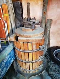Vendo torchio per vendemmia, in legno e acciaio, mai usato, diametro 50cm,tenuto sempre al coperto. Presenta segni di ossidazione dovuti all'esposizione all'aria. Ottimo anche come ornamento per giardini.