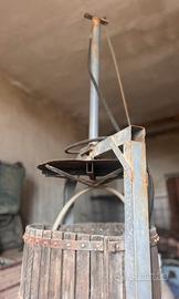Torchio idraulico per uva, modello tradizionale con cesto in legno. Usato, in buone condizioni, ideale per produzione di vino fatta in casa o per collezionisti. Vendo per inutilizzo.