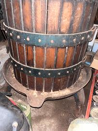 Torchio per spremere l’uva, da circa 130 litri di capienza, in dotazione tutto il necessario per il corretto funzionamento. Diametro da 60 cm. Dal peso di circa 1 quintale.