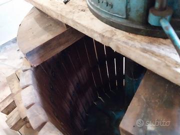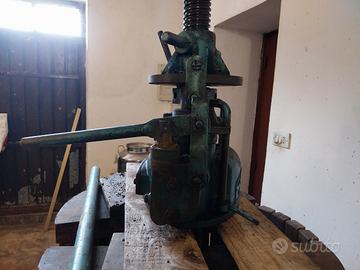 Torchio per uva manuale ideale per produzione di vino fatto in casa o come elemento di arredo rustico per cantine e agriturismi. Struttura solida in ferro con gabbia in legno di grandi dimensioni. Altezza totale circa 2 metri.Altezza contenitore in legno 75 cm. Circonferenza circa 70 cm. Torchio completo di tutti i legni interni per la pressatura e asta in ferro per aumentare la forza durante l utilizzo. Macchina robusta e funzionante adatta per lavorare buone quantità di uva.Marchio Otello Zappelli macchina agricola italiana. Condizioni buone con normali segni di utilizzo.Prezzo 250 euro trattabili. Ritiro a mano.