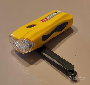 Vendo come nuova, introvabile ed utile torcia a Led ricaricabile a mano tramite leva manovella richiudibile posta sul retro, marchiata Aprilia. Colore gialla con interruttore nero. Dimensioni: lunghezza cm 15 - larghezza cm 6 - altezza cm 4,5.