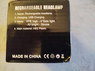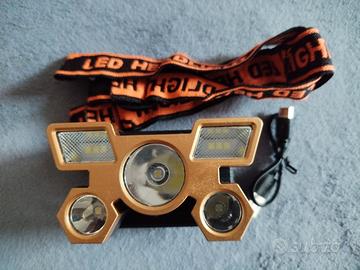 TORCIA FRONTALE RICARICABILE CON CAVETTO USB, 4 MODALITA' DI ILLUMINAZIONE CON LAMPEGGIO RAPIDO