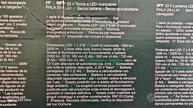 Torcia Led Parkside 20V/2500Lumen Nuova Scontrino