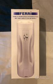 Torcia portatile d’emergenza ricaricabile e con bussola. Nuova mai utilizzata ancora imballata completa di scatola e libretto di istruzioni. Alta 30 cm.