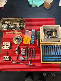Vendo tornio da banco BV20,ideale per picoli lavori su acciaio,alluminio e leghe ferrose. Munito di molti accessori a corredo: -Griffe mandrino interne ed esterne -Torretta porta utensili con cartelle a cambio rapido+torretta originale -Controlunta più grande+contropunta originale -Mandrino punte trapano più grande+ il suo originale -Utensili doppi con diversi inserti -eccetera come si vede in foto Richiesta 800€,si può trattare nel caso chi compra non voglia tutto il corredo. Ritiro in loco e possibile prova/test nel dettaglio. Per ulteriori informazioni resto a disposizione. Vendo per passaggio a tornio di maggiori dimensioni