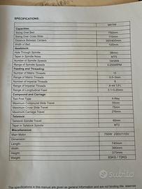 Vendo tornio MX 750 usato pochissimo condizioni come nuovo le caratteristiche del tornio sono nella foto allegata non spedisco il tornio pesante 83 kg ; ho la scatola di legno con cui mi è stato spedito. L’avevo comperato per fare dei lavori di minuteria, ma per me è troppo grande.