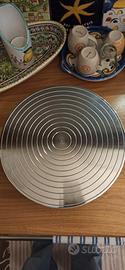Tornio pesante da tavolo per la decorazione della ceramica, in acciaio cromato e verniciato con un piano in acciaio 1 cm di spessore girevole su sfera, con fori per braccio poggia mano. Diam. 250 mm