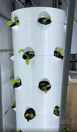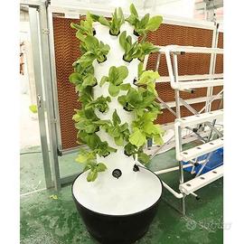 La coltivazione idroponica a torre comprende un sistema di irrigazione innovativo ed efficace , totalmente privo di sprechi ed altamente efficiente.