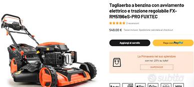 FX-RM5196eS-PRO FUXTEC 190 di cilindrata , come nuovo ancora un anno di garanzia. avviamento sia manuale che elettrico ( la batteria si ricarica automaticamente durante l'utilizzo ma è provvista anche di caricatore , Semovente con due marce flexspeed , porta bicchiere , grande sacco di raccolta da 60 L , funzione mulcing , autolavaggio ( attacco rapido per tubo da giardino -apri l'acqua con il motore in funzione e si pulisce sistema easy clean ). Adatto a terreni anche in pendenza e oltre 2000 mq. vendo in quanto ho venduto la villa dove era necessario. Consegna solo in luogo non spedisco in quanto ingombrante. Potentissimo tra i migliori sul mercato . utilizzo poco piu di tre ore. Contattare gaetano 393 2064329