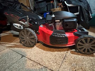 Cesto di raccolta, Scarico laterale, Taglio mulching di serie, Scarico posteriore, scocca Acciaio smaltato.