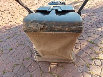 Tosaerba con motore a scoppio Diametro di taglio 46cm Perfettamente funzionante, buone condizioni. Unico difetto la parte alta del cesta di raccolta rovinata come da foto.