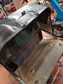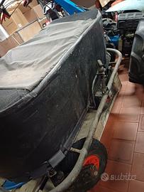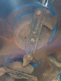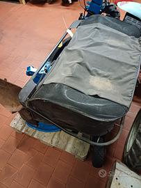 Attrezzo tosaerba con doppia lama per motocoltivatori e motofalciatrici BCS che abbia potenza minima 10 cavalli, larghezza di lavoro 100 cm, cesto di raccolta anteriore ancora in ottime condizioni, ruote gommate anteriori pivottanti, lame con terminali pivottanti, facile rimozione del cesto.
