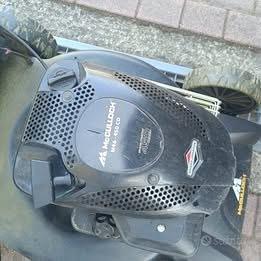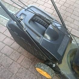Tosaerba con motore a scoppio a trazione con raccoglitore erba.