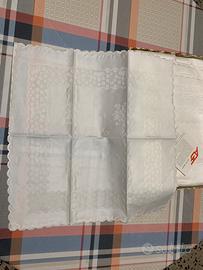 Tessuto 100% cotone. L’articolo indanthrene ha una elevata resistenza e solidità alla luce, agli agenti atmosferici e resiste ai lavaggi con cloro e candeggina. Tessuto di alta gamma. Tovaglia Finemente rifinita. Prestige , con smerlo. Nuova. Inserita in una pratica valigetta