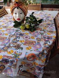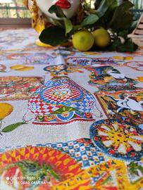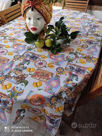 Tovaglia da Tavola Rettangolare in 100 % cotone decorazione stile siciliano misura 150 cm X 270 cm. Prodotta da maestri sarti ai piedi dell'Etna quindi 100% siciliana NO CINA NO IMITAZIONE.